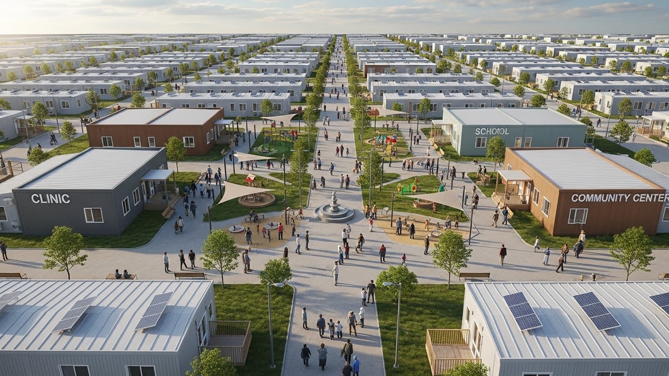 Integrated facilities for refugee camps are modular building systems designed to operate together as a complete settlement. Instead of isolated structures, housing units, healthcare facilities, educational buildings, administrative offices, and support infrastructure are planned and delivered as a unified system.