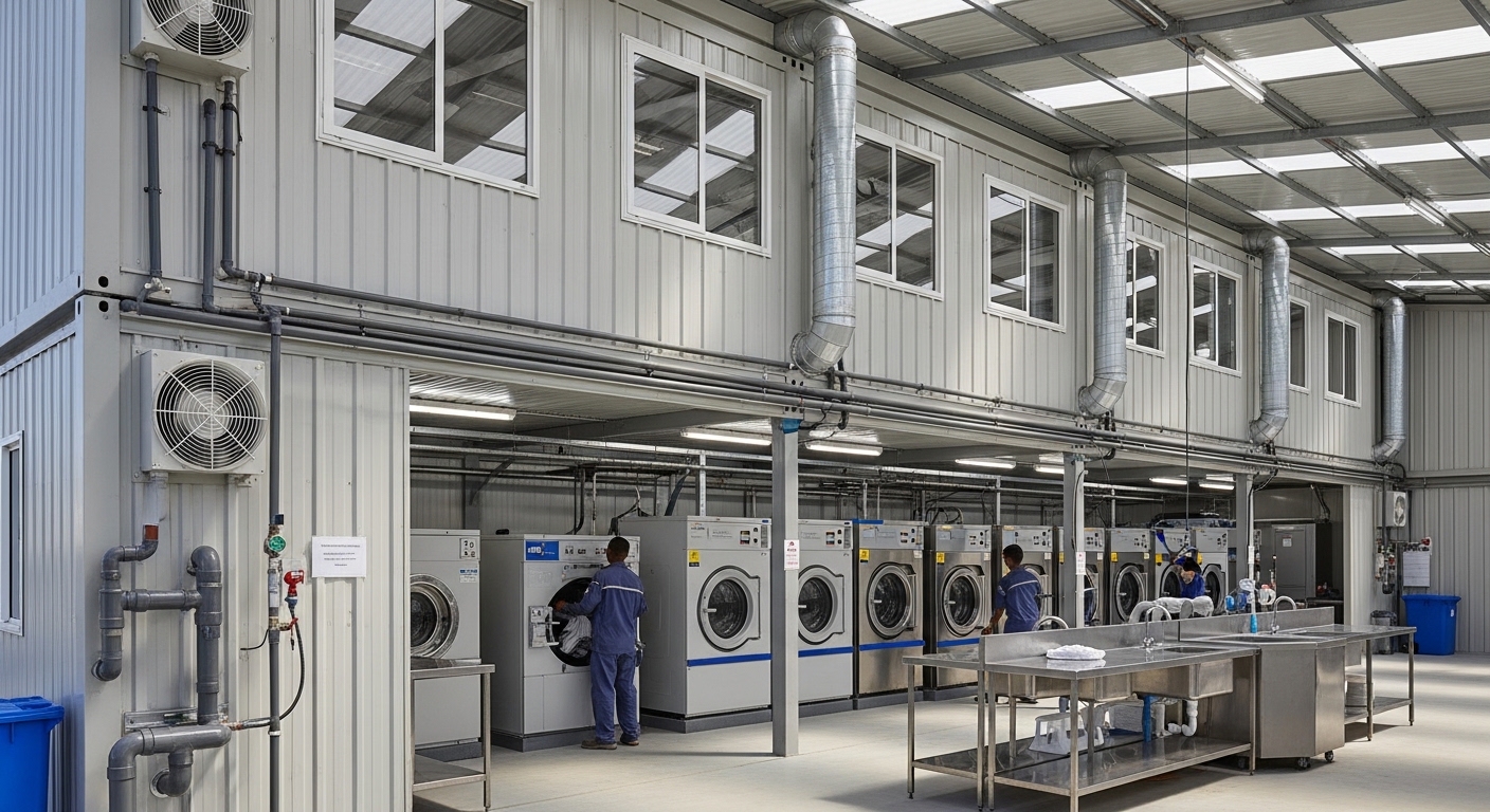 Laundry units enable rapid deployment and immediate operational readiness. Offsite manufacturing allows all mechanical and electrical systems to be installed and tested before delivery, significantly reducing setup and commissioning time on site.