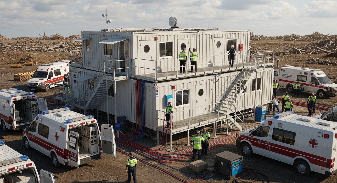 gberkan2026-02-16T13:38:14+03:00Container Type Emergency Response Unit What is..?A container type emergency response unit is a prefabricated, modular facility designed to provide immediate operational capability during emergencies, disasters and critical response situations. Built within standardized container structures, these units are manufactured in factory controlled environments and delivered fully equipped for rapid deployment and immediate use.These units can be configured for medical response, command and control, communication, coordination, temporary accommodation or technical support functions. Container type emergency response units integrate electrical systems, lighting, ventilation, insulation and essential operational equipment, ensuring compliance with international safety, transport and operational standards. AdvantagesContainer type emergency response more..
